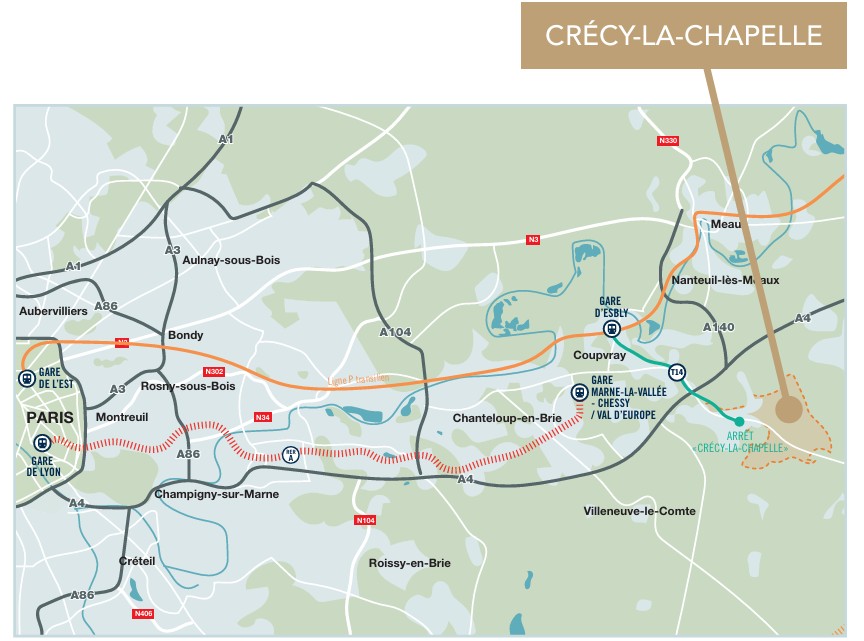 Située à 45 km à l’est de Paris, Crécy-la-Chapelle bénéficie d’une situation privilégiée à proximité immédiate de « Val d’Europe », l’un des pôles les plus attractifs d’Île-de-France. La résidence « Clos Montbarbin » est située rue de Montbarbin au sommet d’une petite coline, tout proche de la ligne T14 du Tramway. Elle se trouve à proximité du coeur de Crécy-la-Chapelle où se côtoient tous les commerces et services du quotidien à proximité de Marne-la-Vallée. Le « Clos Montbarbin » se compose de 3 ensembles de deux bâtiments jumelés, implantés en fond de parcelle à près de 100 mètres de la rue. Ce recul offre aux habitants une ambiance intimiste et sereine, renforcée par la présence de jardins arborés et d’arbres préservés, véritables espaces de nature et de détente.
